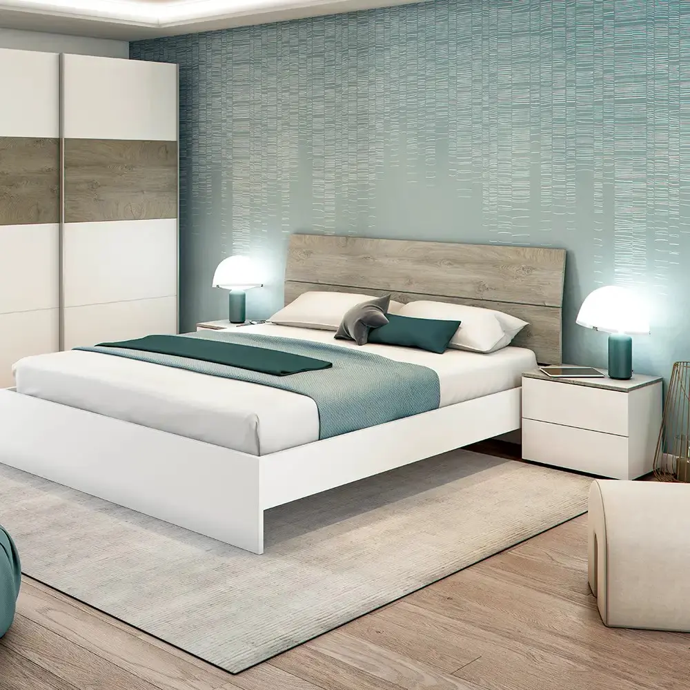 Cabezal + Dos Mesitas color Roble Alaska / Blanco Artik.