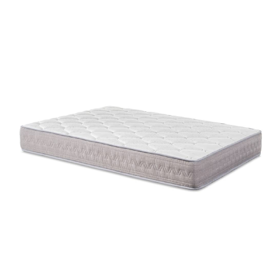El colchón cuenta con un diseño a dos bandas, lo que permite un uso prolongado y homogéneo, aumentando su vida útil. Los tejidos exteriores son transpirables, suaves al tacto y contribuyen a una adecuada ventilación interna, ayudando a mantener una temperatura de descanso confortable.