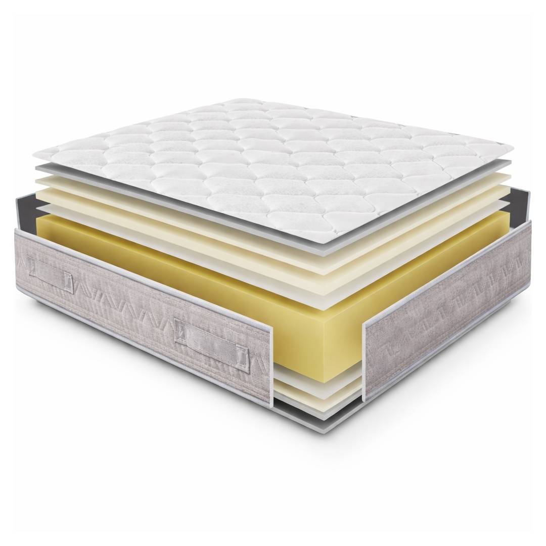 Su núcleo de HR de alta densidad proporciona una base estable y consistente, ideal para mantener una correcta alineación de la columna. Las capas de Visco Soft aportan una acogida progresiva, reduciendo los puntos de presión y mejorando la sensación de confort durante el descanso.