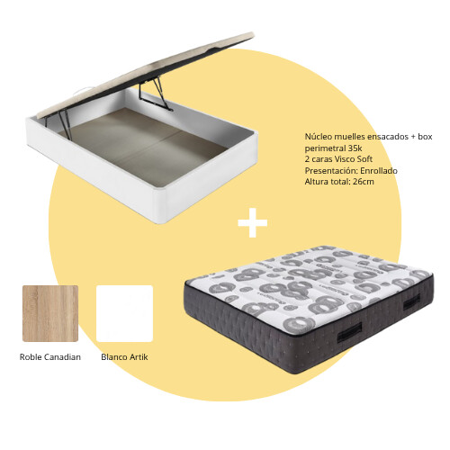 Confort, diseño y almacenamiento en un solo pack. El colchón TBZ XCurban, con su tecnología de muelles ensacados y visco soft, se combina con un canapé abatible de gran capacidad para optimizar el espacio y el descanso en tu hogar.